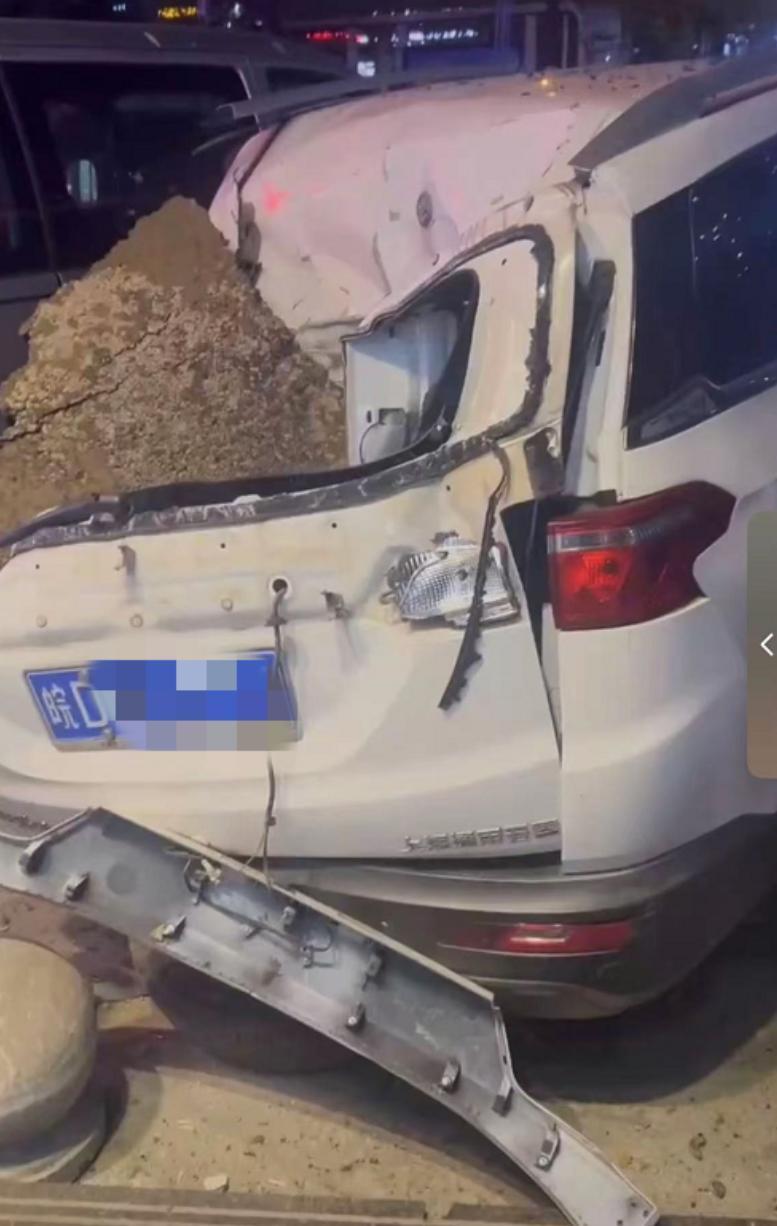 现场视频显示,爆炸威力不小,产生的巨大冲击波,疑似路面水泥块飞溅,导致附近停放的多辆车不同程度受损。有网友贴图称现场一辆车的尾部被炸坏,这位视频发布者称,“我还有一辆车,就在这辆车的隔壁。”