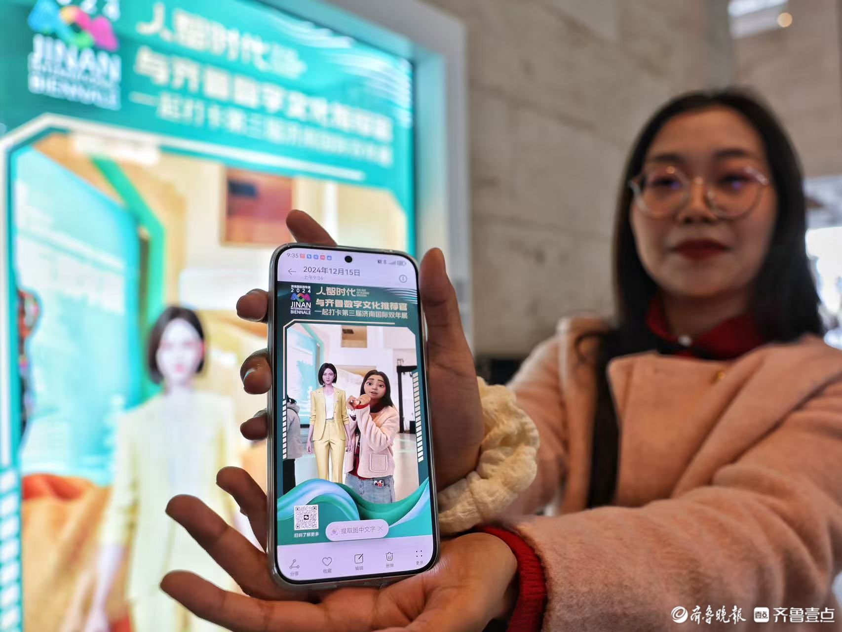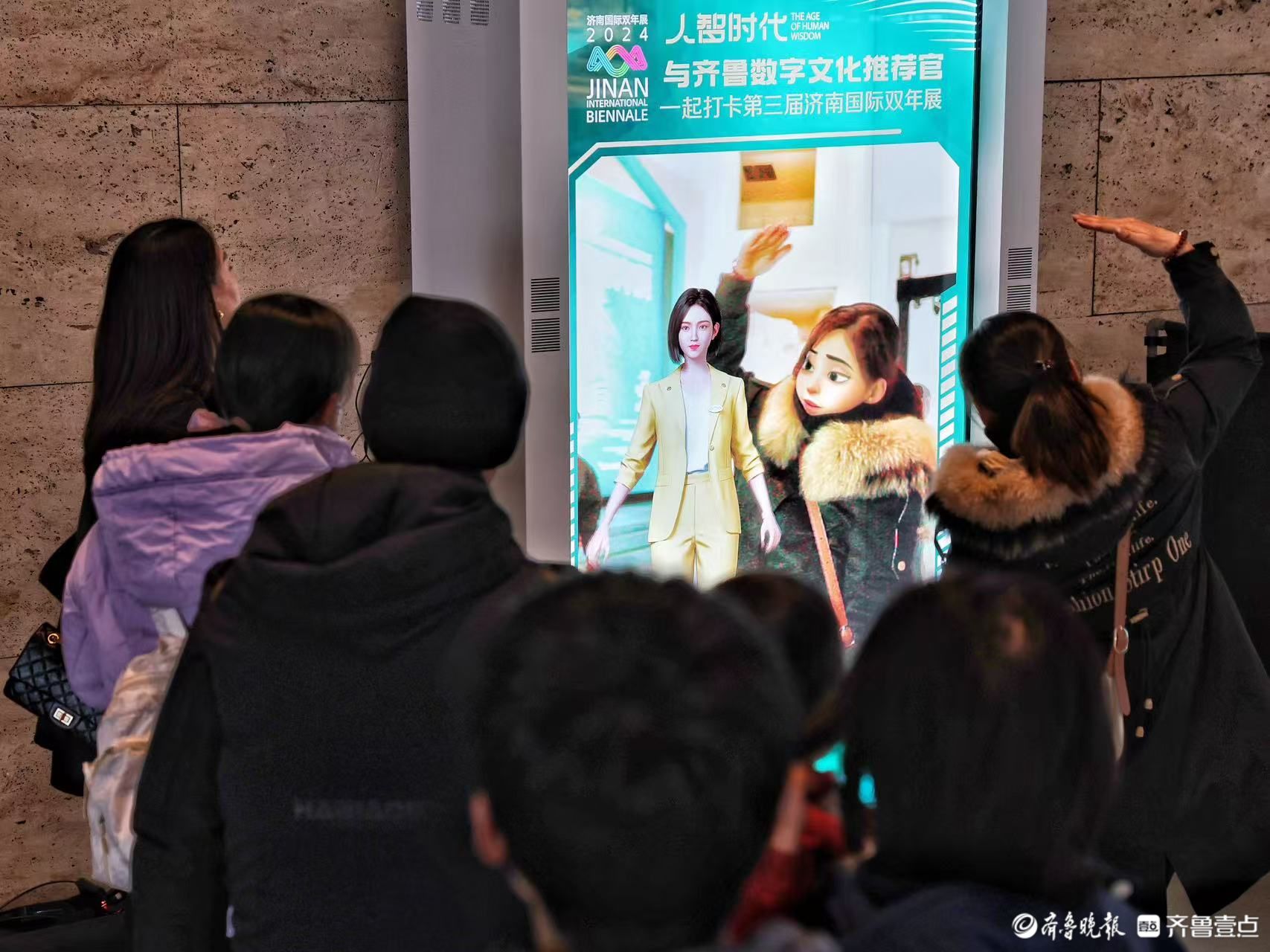 齐鲁数字文化推荐官亮相济南双年展,观众打卡数字人新体验 大众报业·齐鲁壹点 2024-12-15 1.1万 齐鲁晚报·齐鲁壹点 王鑫 实习生赵文文 12月15日,第三届济南国际双年展在山东美术馆和济南市美术馆盛大开幕,成为艺术与科技交融的盛会。在山东美术馆一楼大厅,齐鲁数字文化推荐官“鲁韵”全息仓的亮相,为展览增添了浓厚的数字科技色彩。观众们纷纷排队体验这一新奇的互动项目,通过装置生成自己的“数字人”并与“鲁韵”合影留念,之后扫码下载照片,体验数字技术与文化艺术的完美融合。 责任编辑:曹竹青