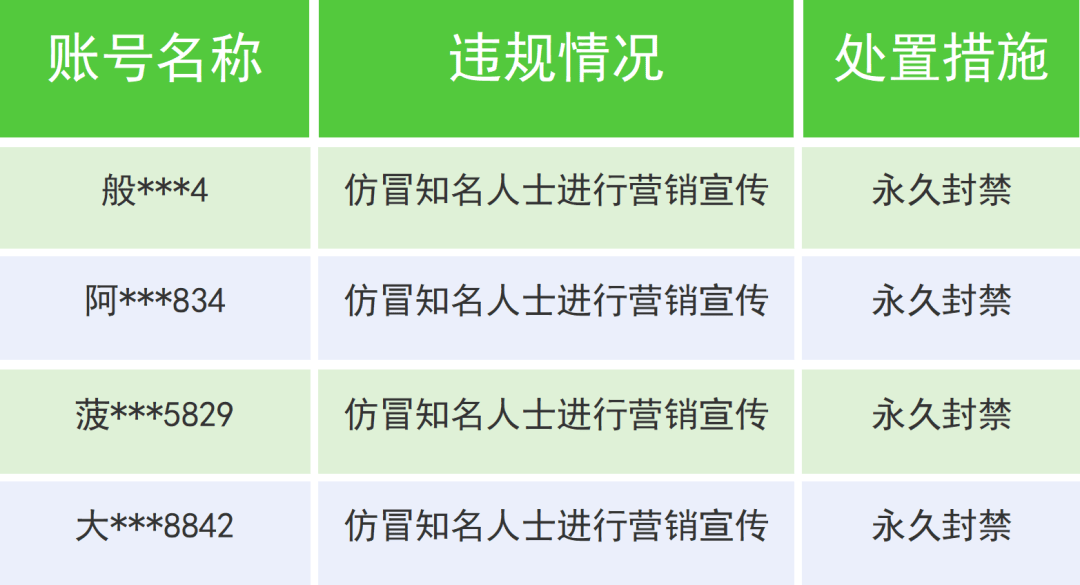 截至目前,累计处置内容532条,关闭账号209个。典型案例如下: