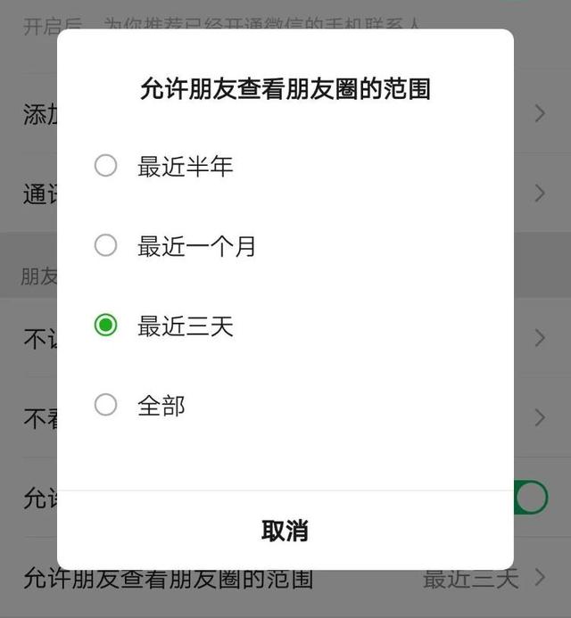 微信朋友圈仅三天可见。