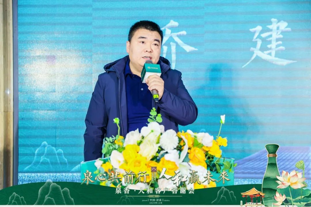 趵突泉酒业销售副总乔建在致辞中对参与活动的客户们表示了热烈的欢迎和衷心的感谢。他提到,趵突泉品牌在莱芜地区能够取得今天的成就,离不开每一位客户的信任与支持。从市场调研到产品推广,从品牌活动到客户服务,每一个环节都凝聚着双方的辛勤汗水和智慧。正是这种相互信任,相互支持的伙伴关系,使得趵突泉酒业能够在竞争激烈的市场中稳步前行,不断取得新的突破。
