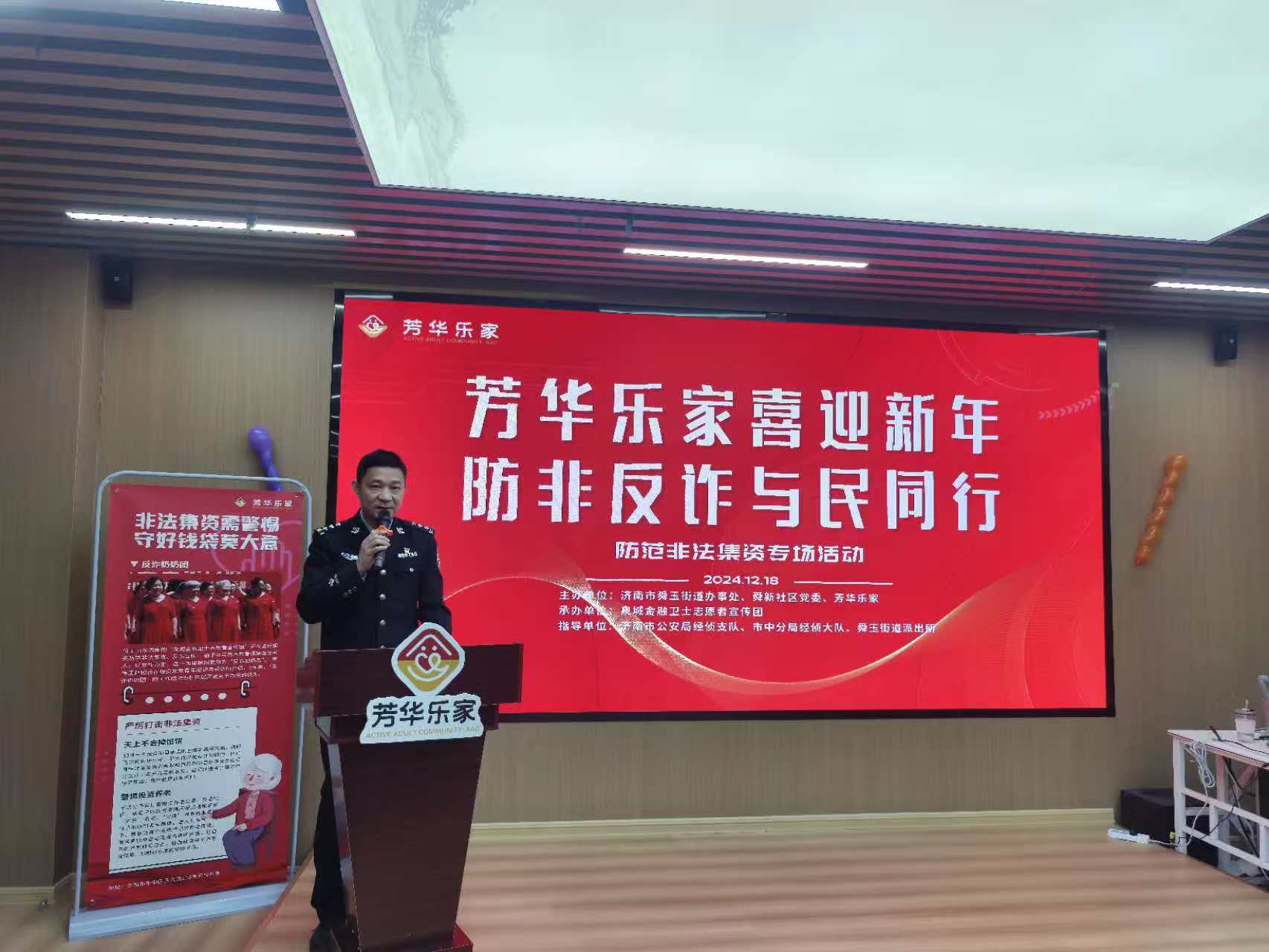 “大家如果接到冒充公检法人员、保健品夸大宣传这类的电话,一定不要轻信,尤其是来历不明的电话和手机短信,更不能向对方透露自己及家人的身份信息、存款、银行卡密码等。”12月18日,在济南市市中区芳华乐家,济南市公安局经侦支队四大队副队长鞠巍用通俗易懂的语言,列举了现实生活中老年人容易遇到的各类诈骗实例。