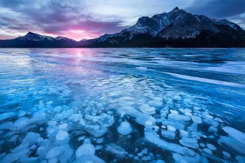 此外,北方冬日冰封的湖面也经常会出现冰泡奇观:极寒导致冰封过快,水中的气泡在上升过程中被“锁”在冰层之中,形成层层叠叠的冰泡,同样非常神奇。
