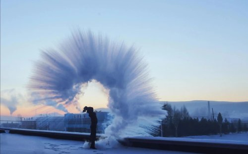 想要达到泼水成冰需要两个条件,一个是最好气温达到-40℃以下,二是一杯90℃以上的热水。热水与空气的巨大温差,是实现泼水成冰的关键。