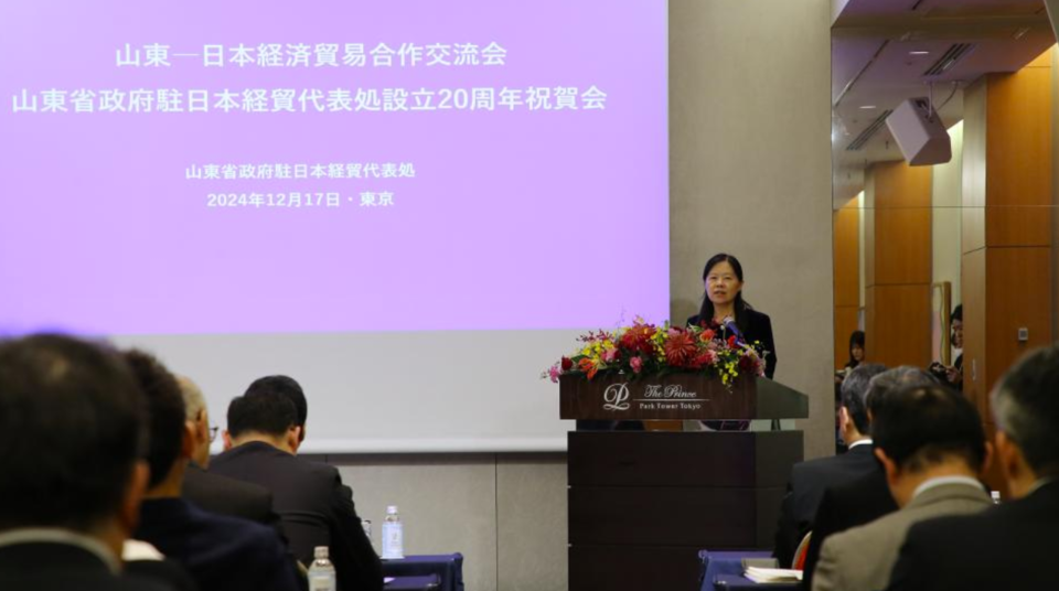 山东驻日经贸代表处首席代表沈瑜婷表示,日本是山东重要经贸合作伙伴,在代表处设立的20年间,山东对日本进出口额从2004年的107亿元攀升至2023年的1874亿元。山东现有日资企业1600余家,住友商事、三菱集团、日立集团、RS科技等一批日本企业投资山东取得良好发展。希望未来双方在贸易、投资、科技与人才等领域进一步深化合作。
