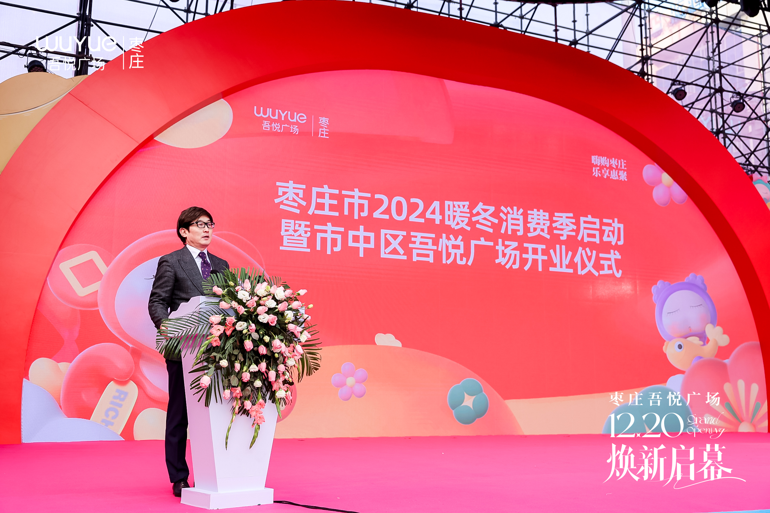 12月20日上午8:38分,八方汇聚,共襄盛举。“枣庄市2024暖冬消费季暨枣庄吾悦广场开业庆典仪式”正式开始。枣庄市政府副市长张龙江,枣庄市商务局局长、市投资促进局局长秦魁,枣庄市商务局副局长林敏,枣庄市市中区委书记宋磊,枣庄市市中区委常委、办公室主任梁栋,枣庄市市中区政府副区长马维纲,新城控股集团副总裁李阜长,新城控股集团商业管理事业部山东区域总经理李磊,枣庄悦融泰商业管理有限公司董事长虞海平,新城控股集团商业管理事业部枣庄吾悦广场总经理艾怡帆,以及百余位品牌嘉宾、媒体朋友、社会各界人士出席了本次盛会,共同见证了这一城市商业盛典。