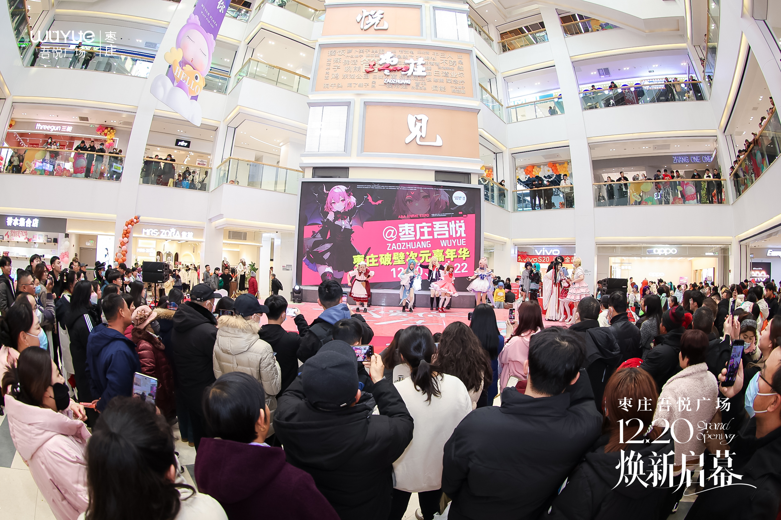 开业期间精心策划了人气活动,有实力歌手张玮助阵、千架无人机点亮枣庄、千万粉丝coser首次亮相漫展嘉年华、城市民族DJ音乐节、《组个神仙局》IP美陈全国首展等一系列活动。除此之外,枣庄吾悦广场着重与枣庄人民的建立情感连接,与市中建立情感纽带。联动齐鲁晚报推出《枣庄发展史展览》活动,发起“老物件征集”线上话题,面向全市征集各类承载枣庄文化和故事的老物件,枣庄独特的老物件与吾悦新地标碰撞出璀璨火花。