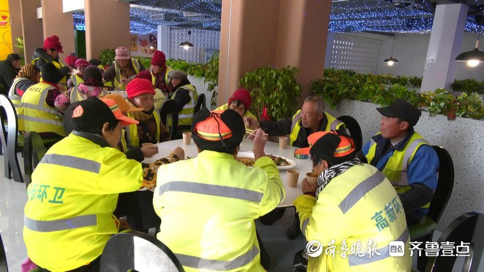 12月21日,位于枣庄高新区兴城街道的一家爱心餐馆开展冬至宴请环卫工人活动,以此表达对“城市美容师”们的关爱、问候和敬意。