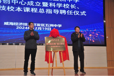 2024年12月19日下午,“五洲中学信息科创中心成立暨科学校长工作室揭牌仪式”在学校报告厅举行。同时,邀请哈尔滨工业大学周广禄教授带来科学校长进校园公益科普讲座。这是学校立足“初高中贯通培养项目”,培养创新拔尖人才的重要举措。