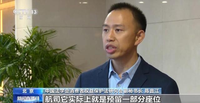 中国法学会消费者权益保护法研究会副秘书长 陈音江:航司它实际上就是预留一部分座位,我觉得有一定的合理性。但是消费者购买了机票,实际上建立了一个乘务的消费合同,航司有责任提供相应的座位,不能把选座专门作为一个盈利的买卖,尤其是不能故意制造信息差,损害消费者的知情权和选择权。