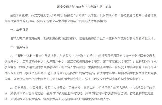西安交通大学2024年少年班招生简章图/西安交通大学官网