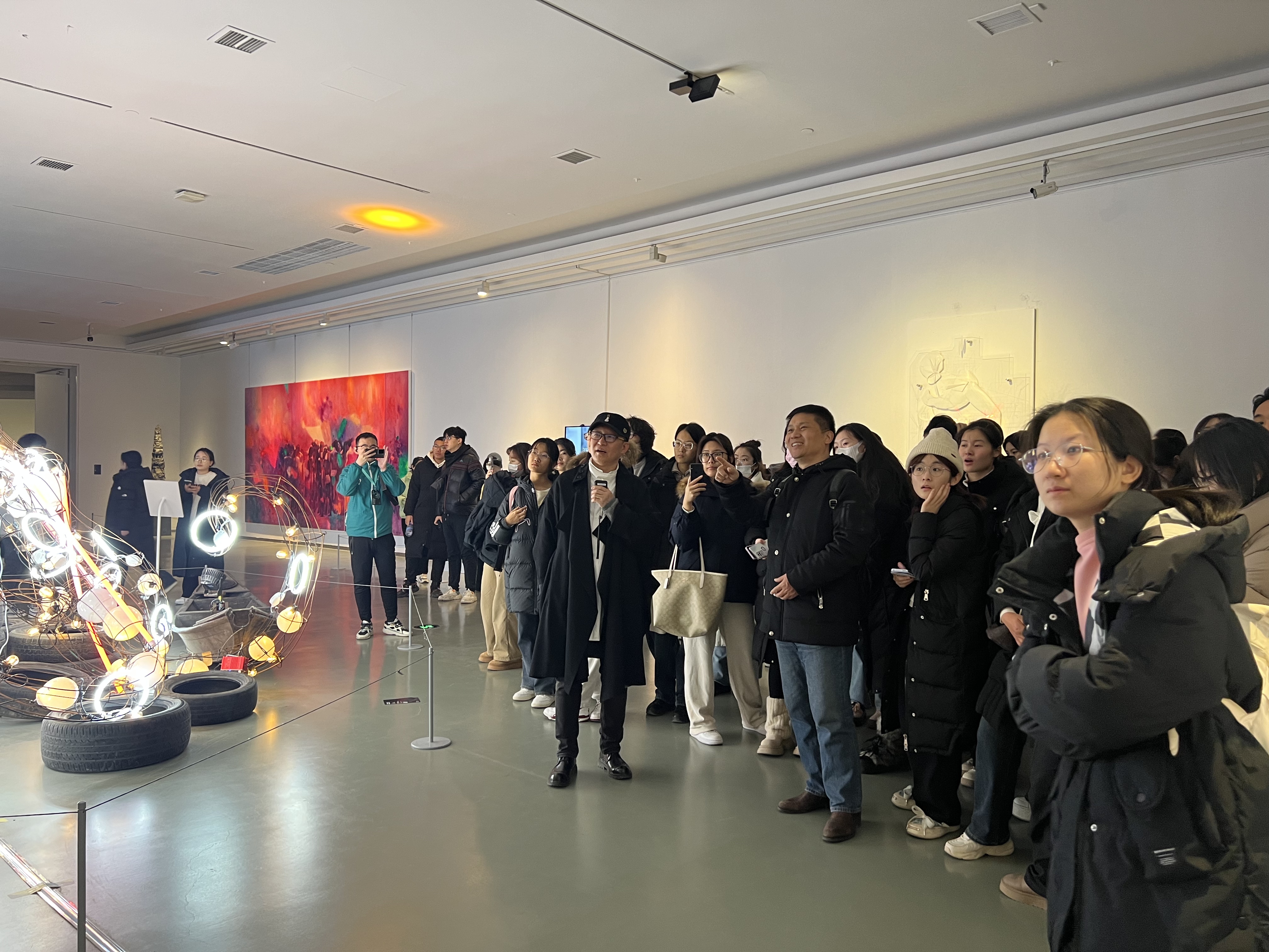 活动现场,山东美术馆学术研究部郭振宇主任亲自讲解,为同学们带来了一场艺术的盛宴。郭振宇以其深厚的学术造诣和丰富的实践经验,从创作背景、表现手法到艺术内涵、社会价值,深入剖析了济南国际双年展中的艺术作品。