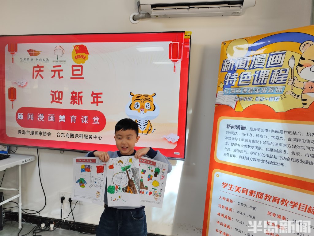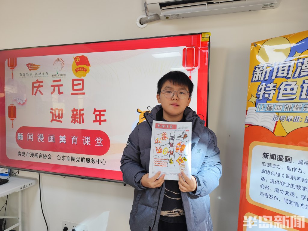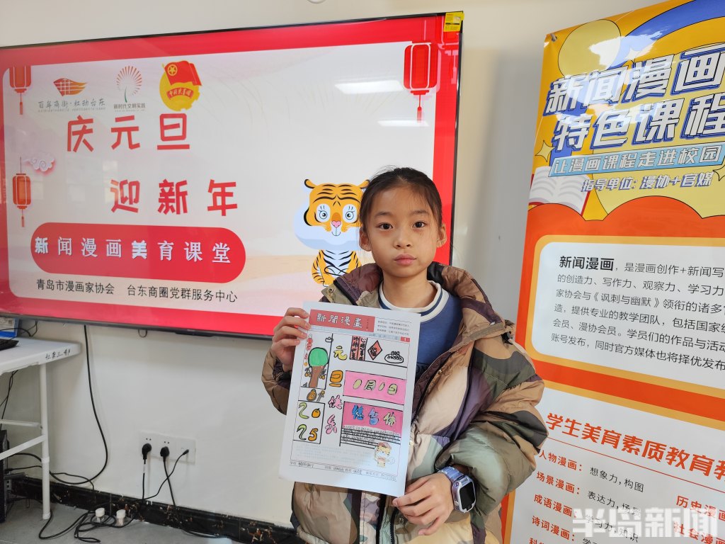 以画启智,以美育人!台东街道联合青岛市漫画家协会开展“庆元旦 迎新年”新闻漫画美育课堂