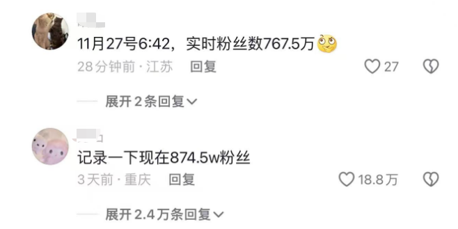 据悉,“羊毛月”此前在某短视频平台拥有超890万粉丝。截至目前,“羊毛月”粉丝数为728万,掉粉超160万。