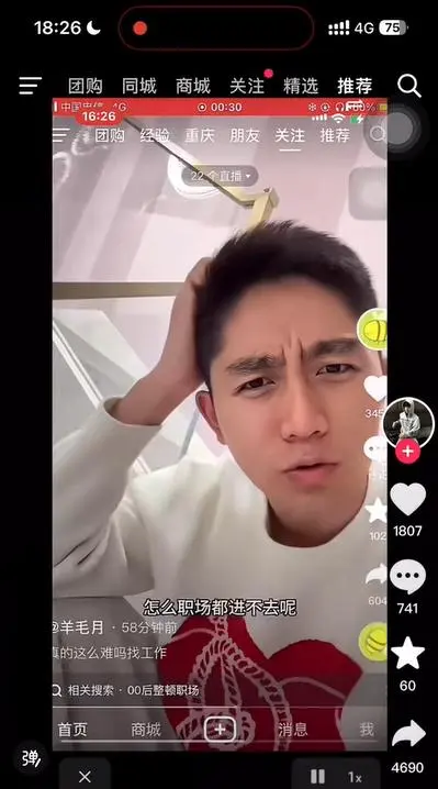 今年11月,百万粉丝网红博主“羊毛月”在社交平台上发布一则名为“这么难吗找工作”的视频,并吐槽00后找不到工作。