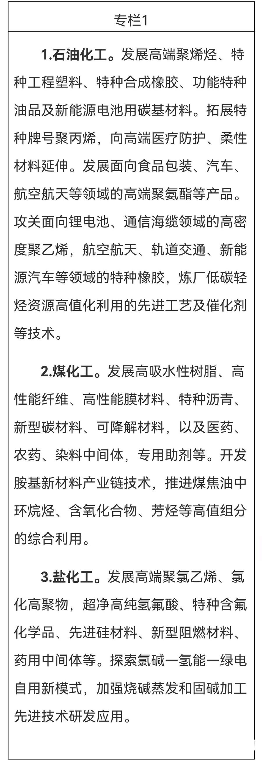 延伸一批化工产业链条,即发挥石化、煤化、盐化等传统化工产业的技术和规模优势,围绕乙烯、丙烯、丁烯、聚氨酯、尼龙、PX、煤基精细化工、氟硅、高端功能化学品等产业链,加快向高端、精细、特色、终端方向“建延补强”。