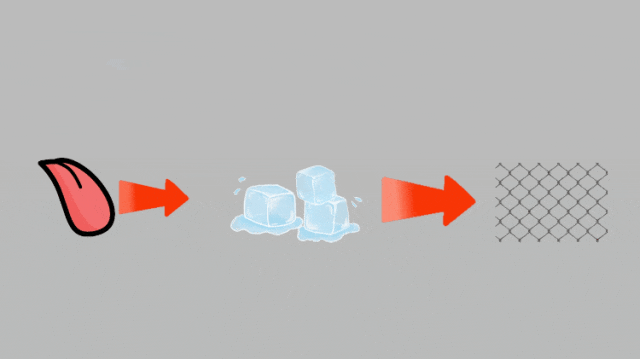 舌头向冰注入的热量远远跟不上冰失去的热量,因此冰会越结越牢实。”