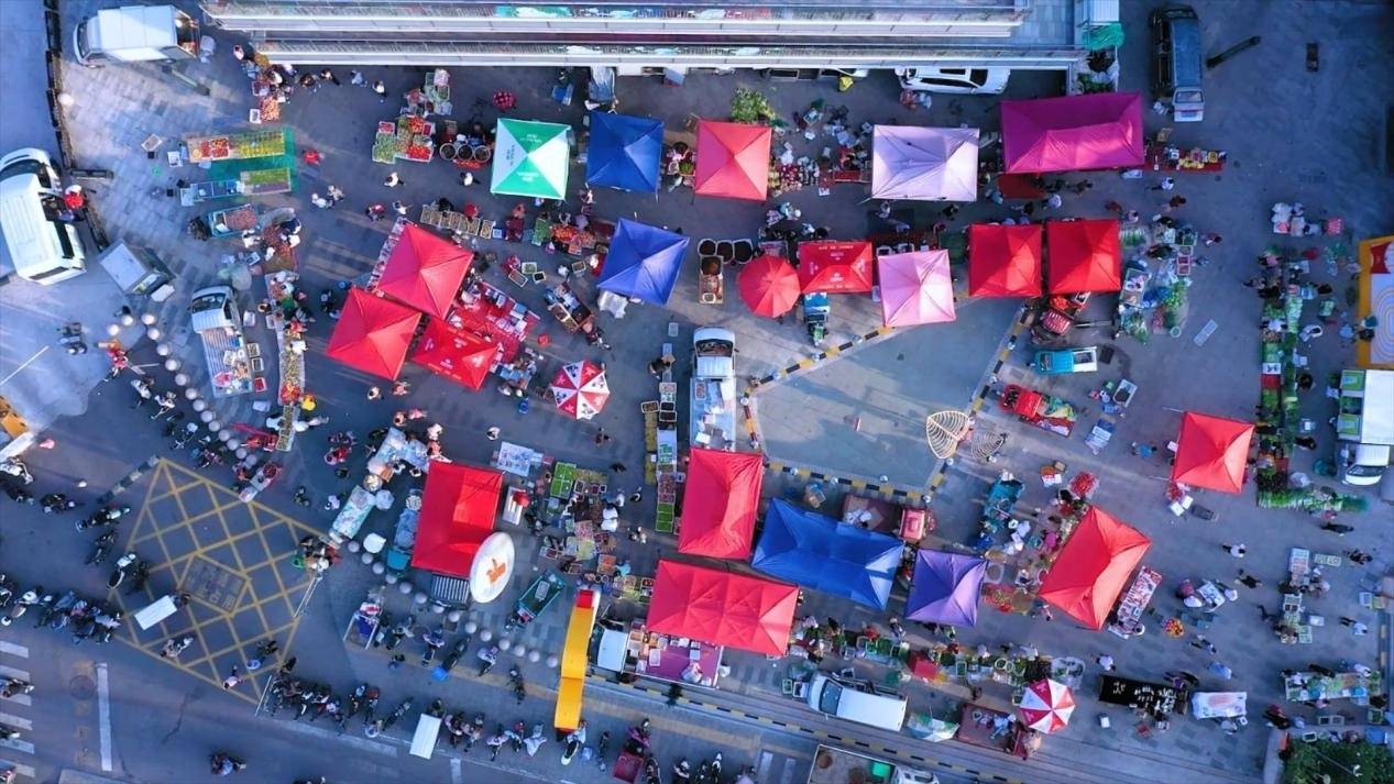 凌晨5点,城市刚刚逐渐苏醒,槐荫区凤凰街“便民助农益站”早市已是忙碌声一片,早餐摊位、蔬菜摊位连成一片,“支付宝到账”“微信收款”的系统提示声音此起彼伏。为满足群众对日常经营消费和城市“烟火气”的需求,槐荫区城管局联合振兴街街道通过阳光新城社区“城管工作站”,经广泛征求居民意见和物业意见,在凤凰街广场设立“便民助农驿站”,设置了60余个摊位,主要经营水果蔬菜、农副产品。营业时间为:夏季(5月1日—9月30日)早5点至9点;冬季(10月1日——4月30日)早6点至10点。惠及周围阳光100小区、卧龙花园等社区5万余市民群众。