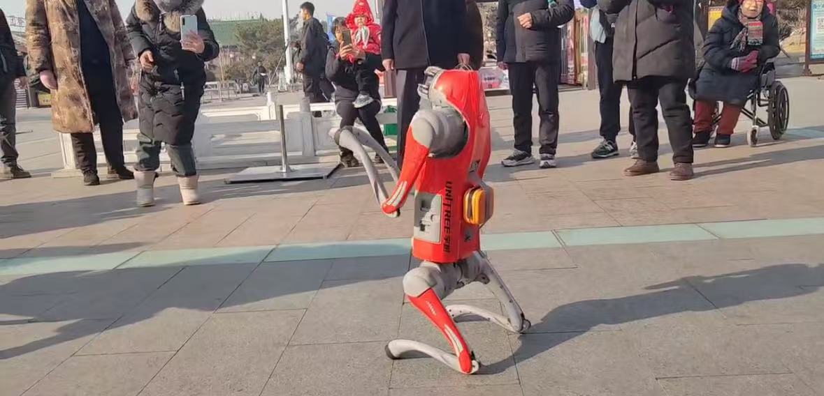 Go2还搭载了宇树科技自主研发的4D激光雷达,能够精准识别并避开障碍物,确保其在复杂地形中稳定行走。与传统宣传方式不同,Go2不仅能通过语音传达信息,还能与游客进行多种趣味交互,如“拜年”“比心”“握手”“跳舞”等动作,成为景区的一大亮点。它的出现让游客在享受泰山美景的同时,感受到科技带来的趣味与便利。