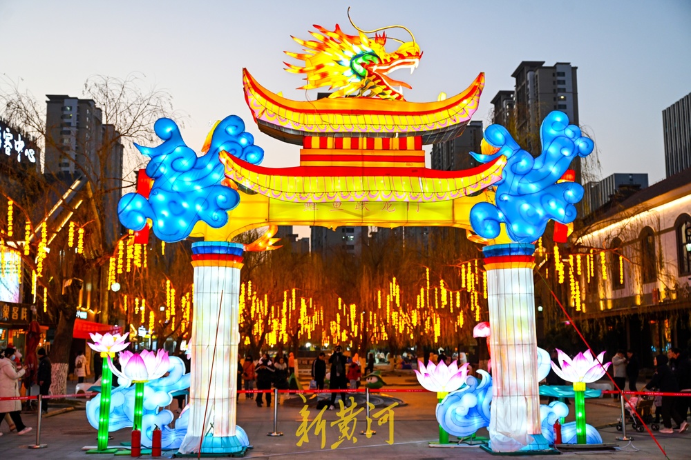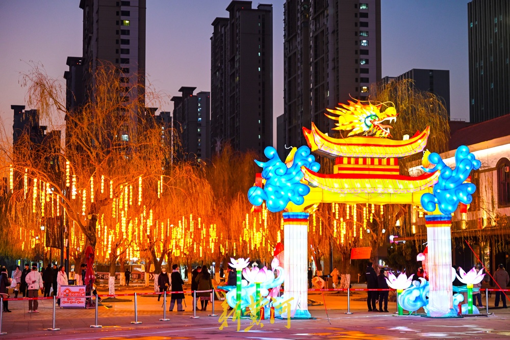 以“鲤鱼跃龙门”为主题,寄托市民对美好生活的向往,营造出积极向上的新春氛围。