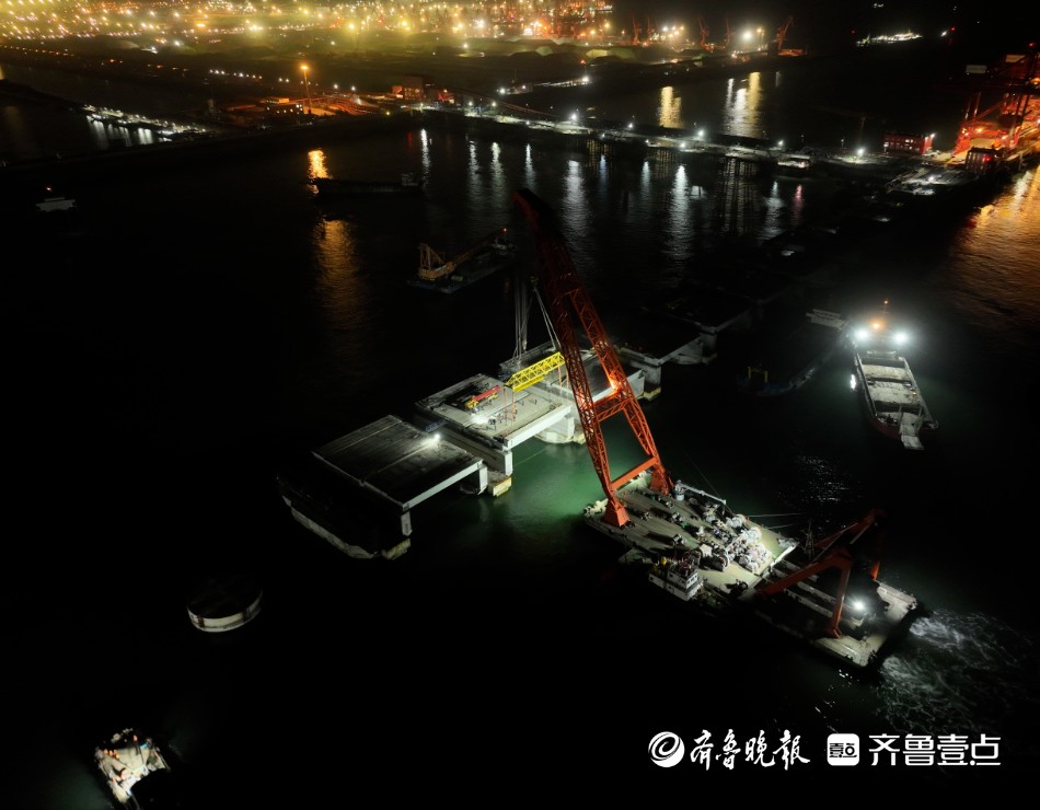 12月30日23时58分,随着最后一榀箱梁成功安装,山东港口青岛港第二座40万吨矿石码头工程胜利完成年度攻坚目标,码头梁板安装完成、引桥合龙、堆场土建基本完成,项目建设取得阶段性胜利。