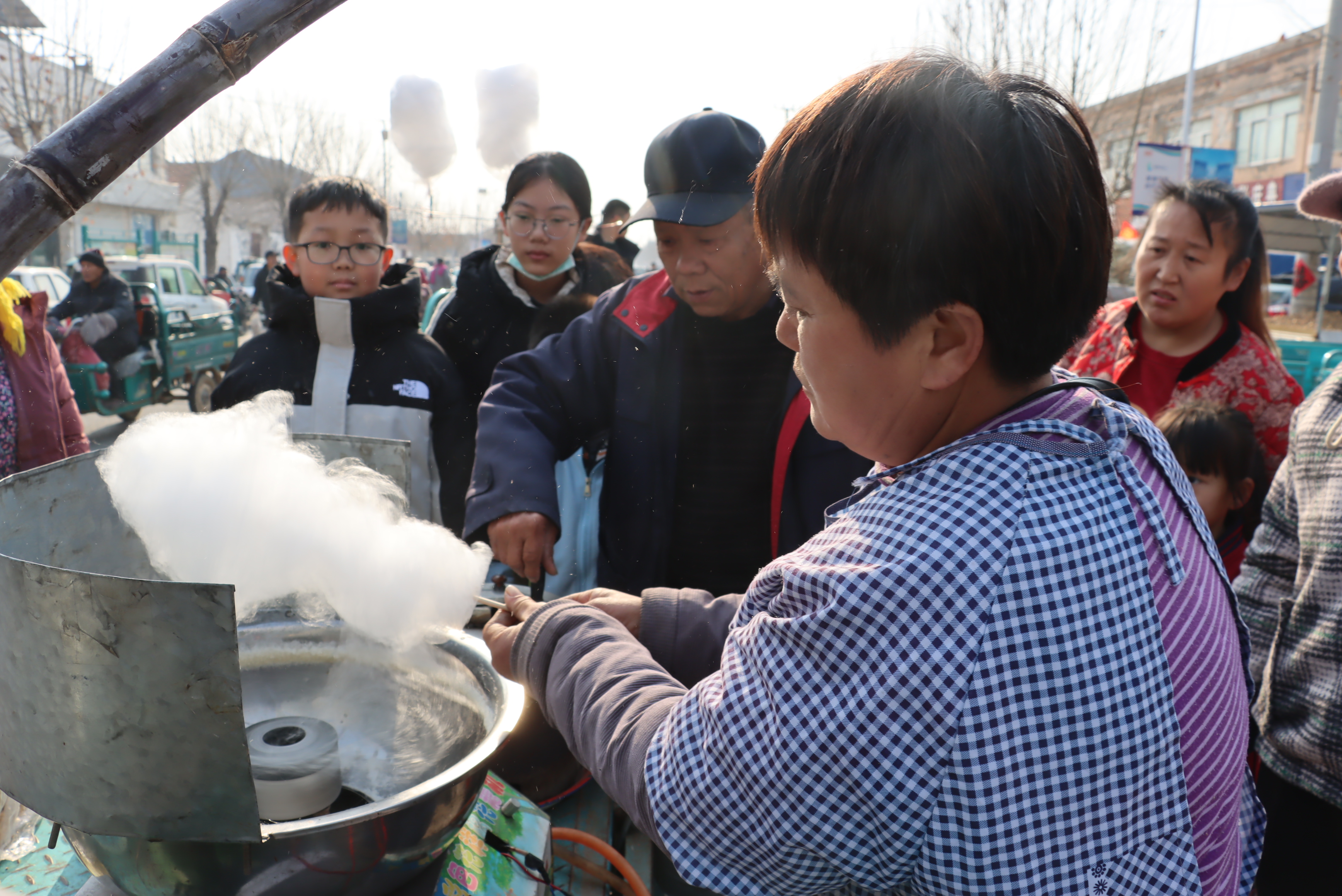 俗话说,进了腊月就是年,当日黄升大集既是新年第一天,又是进入腊月的第一个大集,赶集的人们一波接一波,人流量明显的多了起来。在黄升黄河大集上,晶莹剔透的糖葫芦、新鲜的水果蔬菜、刚出锅的爆米花、热气腾腾熟食制作,还有老年人喜欢的手工扫帚等,无一不显现当地的人间烟火气和新年的喜庆,就连镇上的邮储银行也利用当天人流量大,开展了储户抽奖活动。
