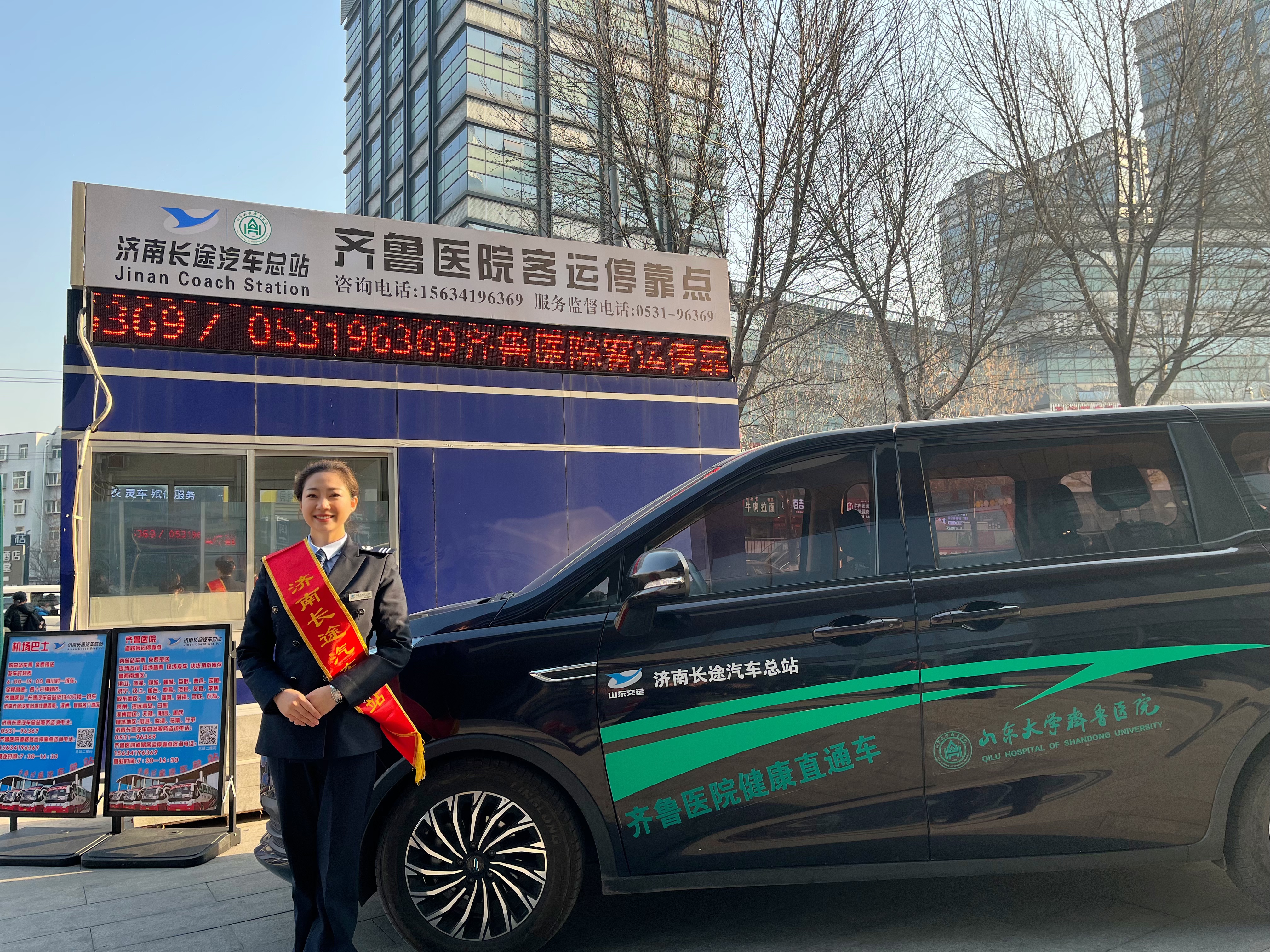 济南长途汽车总站“健康直通车”新站点——齐鲁医院站点试运行