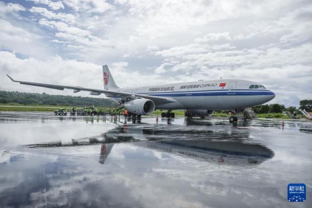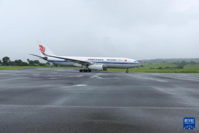 1月2日,装载救灾物资的中国民航包机降落在瓦努阿图维拉港国际机场。新华社记者 龙雷 摄