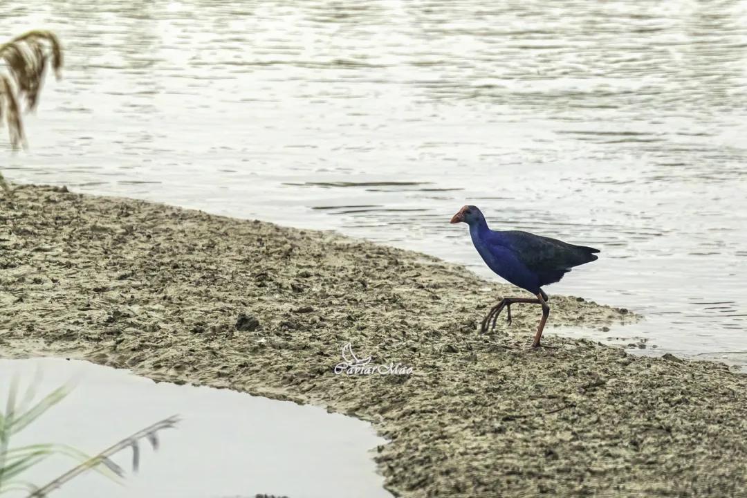 “2024年12月11日,我和另一位鸟友专程前往温州湾观测灰鹤和东方白鹳,没想到在温州湾围垦区一号水闸附近,发现了一只周身泛着蓝色光泽的水鸟。”