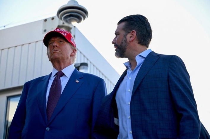 特朗普和他的儿子小唐纳德·特朗普(右) 资料图片