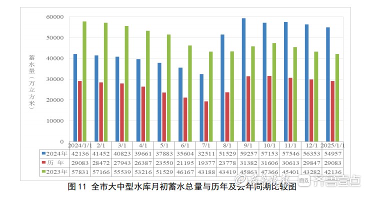 根据青岛市水文局发布的2024年水情年报,2024年,青岛市全年和汛期降水均明显偏多,2024年全市平均降水量924.2毫米,较历年偏多三成多。全年发生大范围强降水过程11次,全市23座大中型水库(不含棘洪滩水库)蓄水量总体偏多,年末全市23座大中型水库蓄水总量为54957万方,较历年同期偏多近九成,其中7月末至9月中旬,全市23座大中型水库总蓄水量居有水文统计资料以来历史同期首位。