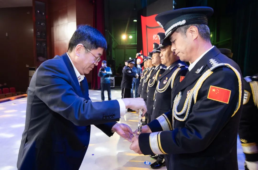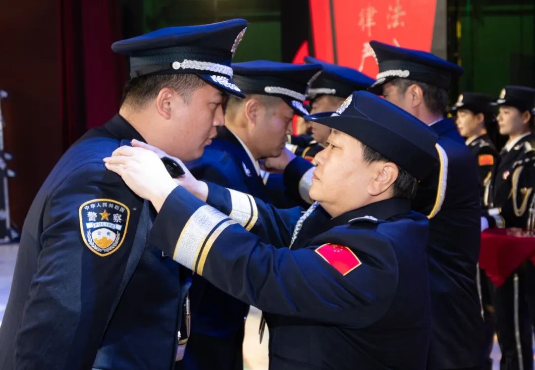 曾经的你,是少年艳阳,是初披藏蓝的意气风发,如今的他,薪火相传,驰而不息。荣休民警为新警授衔,新老交替,誓言永恒。在重温入警誓词的那一刻,时光仿若凝滞,初心与使命交织,传承与担当碰撞,德城公安的精神火种在代代相传中愈燃愈旺,照亮着前行的道路。