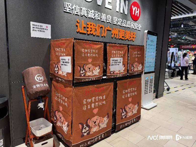 商品调整是一方面,“胖东来”模式最大的特点之一就是服务。一到永辉南沙万达店门口,各种便民的设备就映入眼帘,店门口左侧设有宠物寄存区,右侧则是便民服务区,供有微波炉、直饮水、冰袋、纸巾、吸管等。