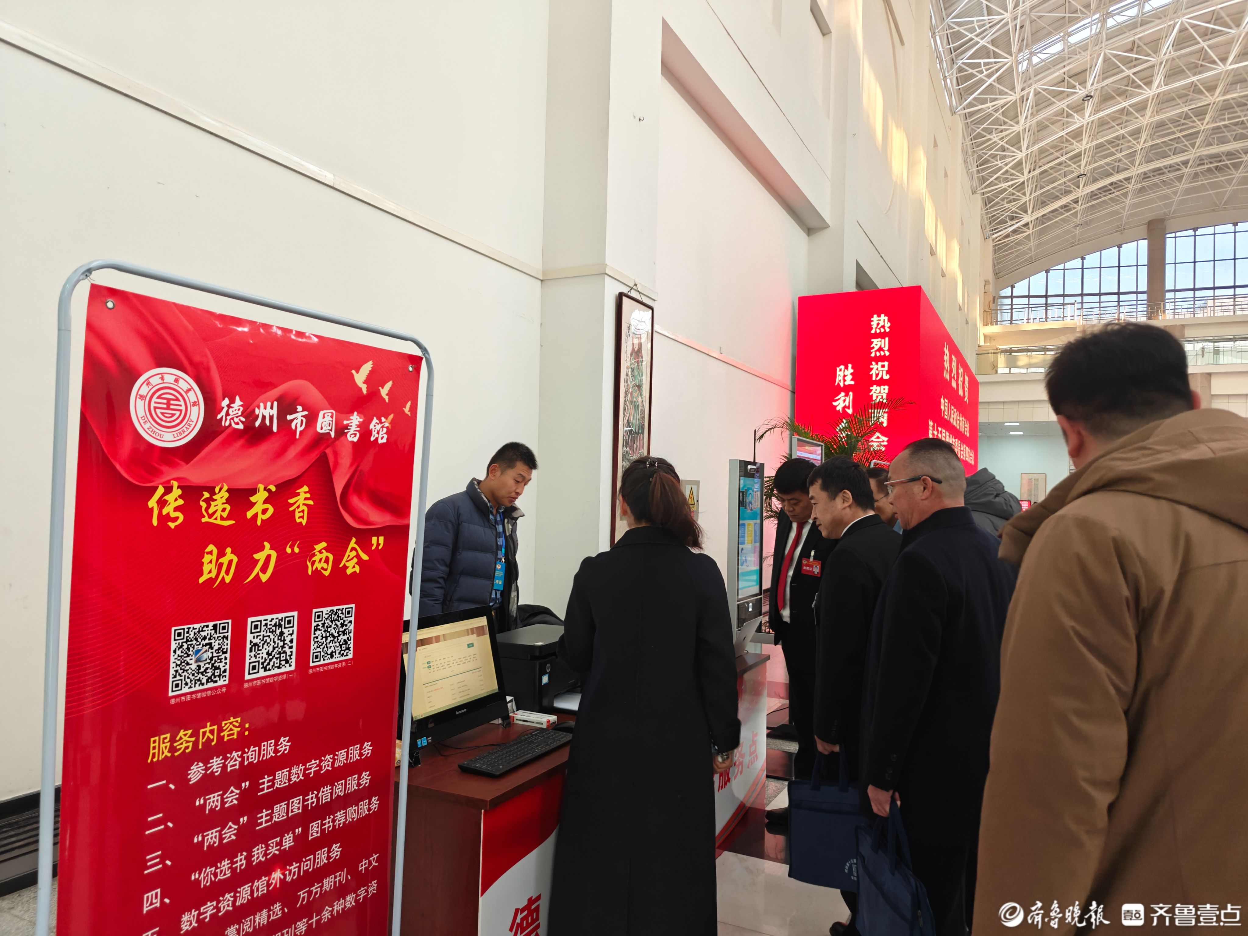 为充分发挥德州市图书馆文献资源优势,更好地为德州市两会代表、委员们参政议政提供服务,特申请入驻酒店为两会代表、委员提供免费办证、数字资源免费访问、参考咨询、图书荐购等服务。