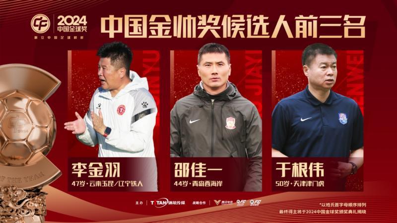 2024中国金帅奖前三名:李金羽、邵佳一、于根伟