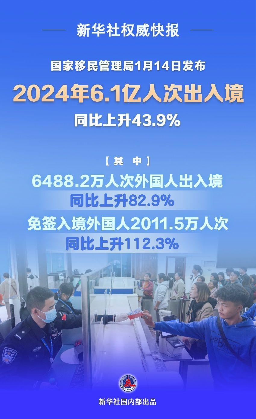 14日,国家移民管理局发布最新数据:2024年,6.1亿人次出入境,同比上升43.9%;全国各口岸免签入境外国人2011.5万人次,同比上升112.3%。数据实证“China Travel”潜力无限。