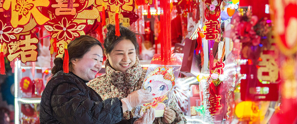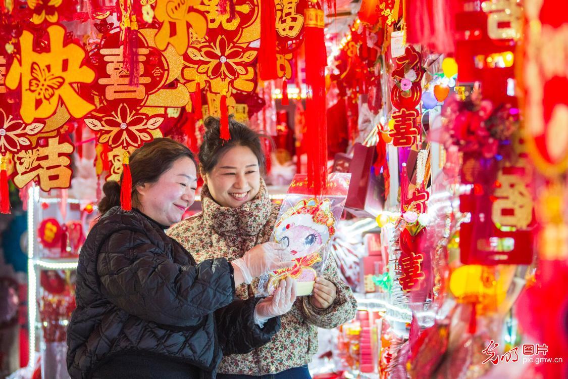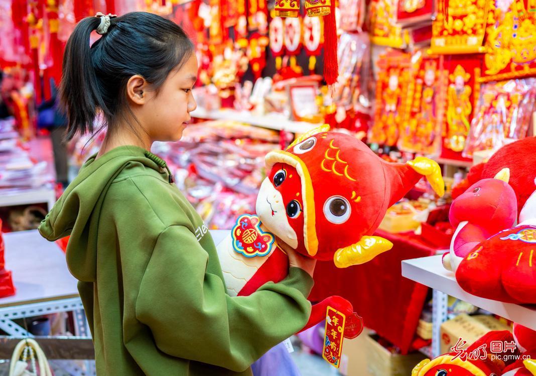 2025年1月6日,市民在河南省商丘市睢县一批发市场内选购春节饰品。(徐泽源摄/光明图片)