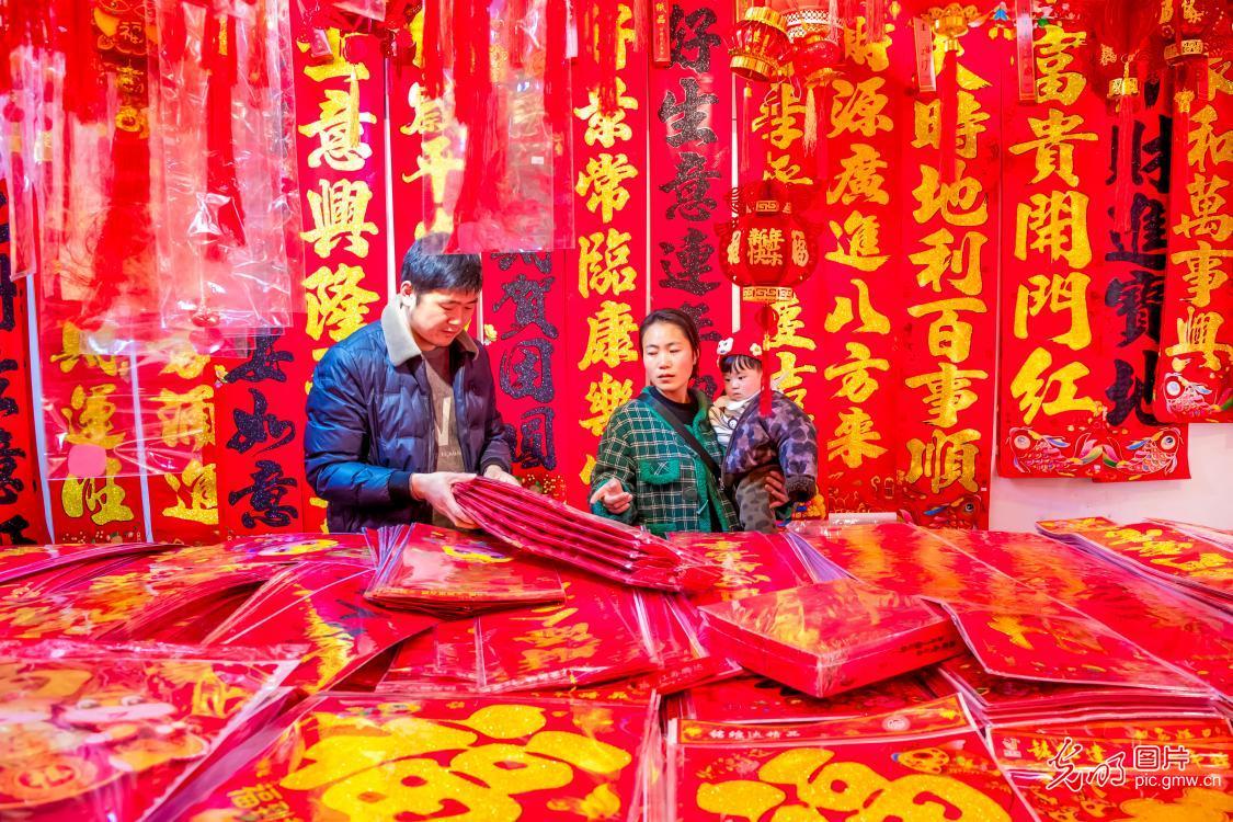 春节临近,年味渐浓。各地年货市场喜气洋洋,大红灯笼、中国结、春联以及蛇年元素的年货饰品非常醒目,吸引了不少市民前去选购。