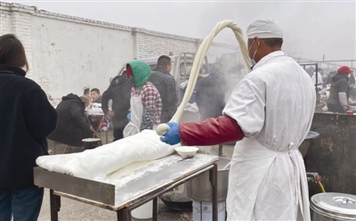 红灯笼下的白豆腐,绝配!牛坨子豆腐是大集上的美味加“颜值”担当。摊位上永远排着长长的队伍,嫩豆腐、老豆腐、豆干、豆皮……品种齐全。摊主郭玉良忙得不可开交,切块、装袋、称重、收钱……他说:“我来牛坨子大集十多年了,我卖的最好的就是老豆腐,本地人都爱吃,就是传统老味儿,每场集都能卖个1000来斤。因为我住得远,牛坨子大集还特地帮我协调了位置好的摊位,大伙儿都喜欢我家的豆腐,收入也不错,都开心。”顾客们买了豆腐,还得捎点现做现卖的熏肠子、正宗李记咸菜、油锅里滚烫的大麻球……