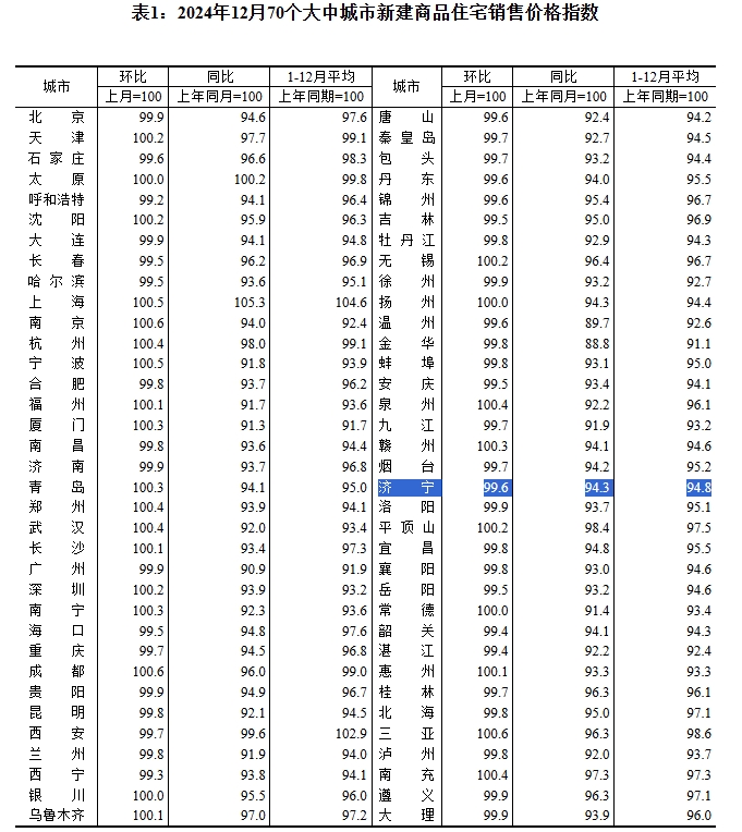 17日,国家统计局发布了2024年12月份70个大中城市商品住宅销售价格变动情况统计数据,济宁新建商品住宅销售价格环比下降0.4个百分点。