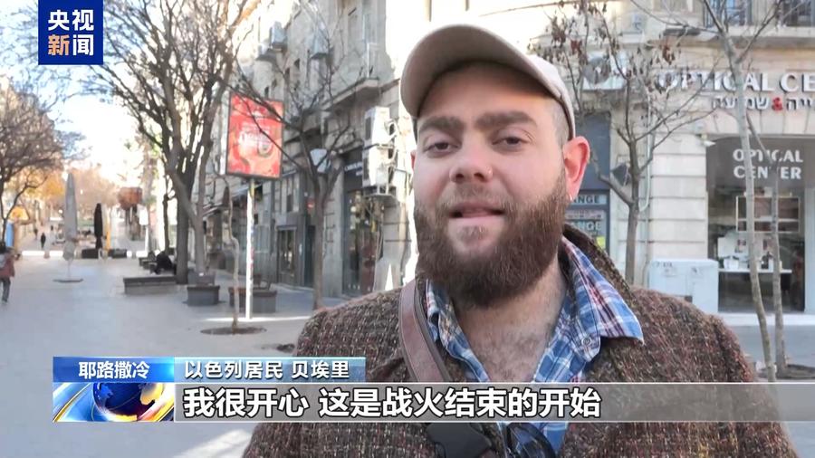 以色列居民 贝埃里:我很开心,这是战火结束的开始,希望尽可能多的被扣押人员能够回家,这是当前最重要的事情。也许停火是结束巴以双方痛苦的开端,希望如此,这就是我所希望的。