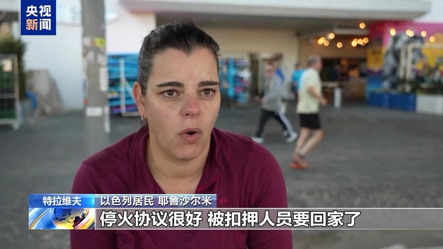 以色列居民 耶鲁沙尔米:停火协议很好,被扣押人员要回家了,我们等了很长时间,等待太久了。停火协议还有一个问题,就是它可以更早达成,但我还是很高兴,被扣押人员终于要回来了,我们都在等着他们,对以色列和以色列民众来说这都是个希望。