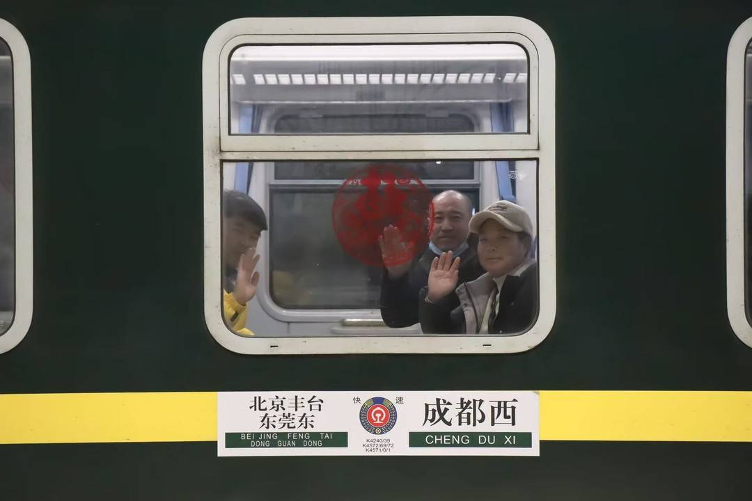 “共青团号”列车护送四川老乡回家过年。 中国铁路成都局集团成都机务段供图