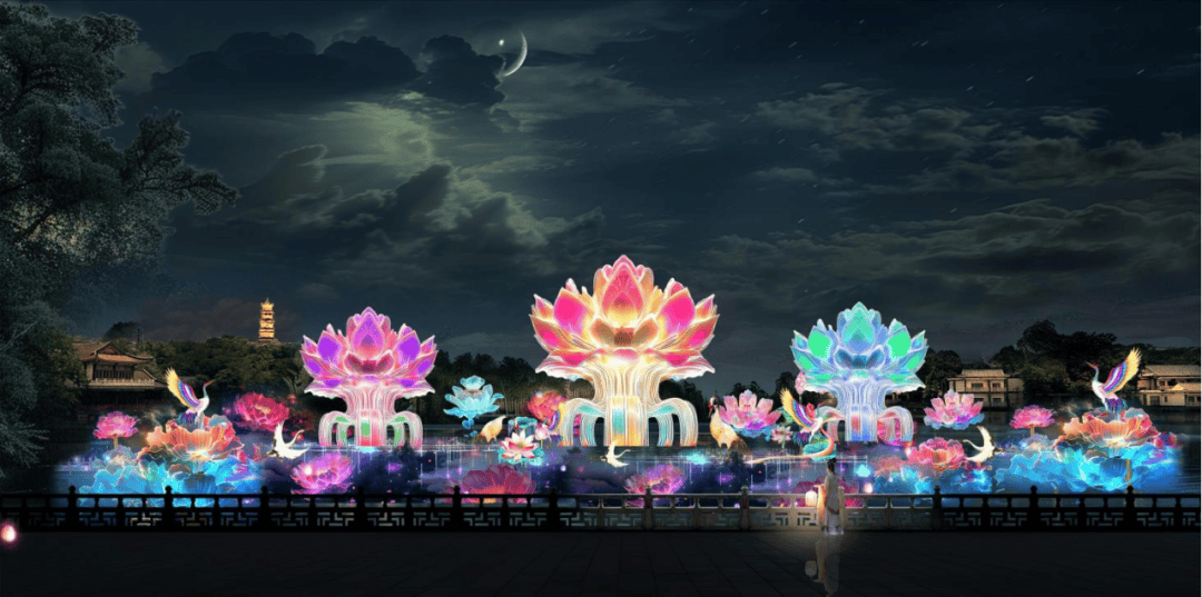 夜幕降临,华灯初上,乘上缓缓行驶的观灯游船,远离堤岸边的人潮。在悠悠湖面上,伴着轻柔的水波,驶向灯火阑珊的东坡梦境。沿途,《步步生莲》《千年之约》《花开盛世》等大型灯组逐一映入眼帘,乘船置身其中,仿佛穿越千年,亲临盛世篇章。
