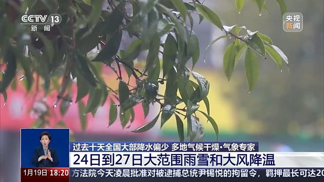 另外,24日到27日,中东部地区有4到6级偏北风,气温将下降8到12摄氏度,部分地区降温幅度可达14到16摄氏度。气象部门提示,正值春运期间,大家要提前做好防范雨雪降温天气的准备措施。