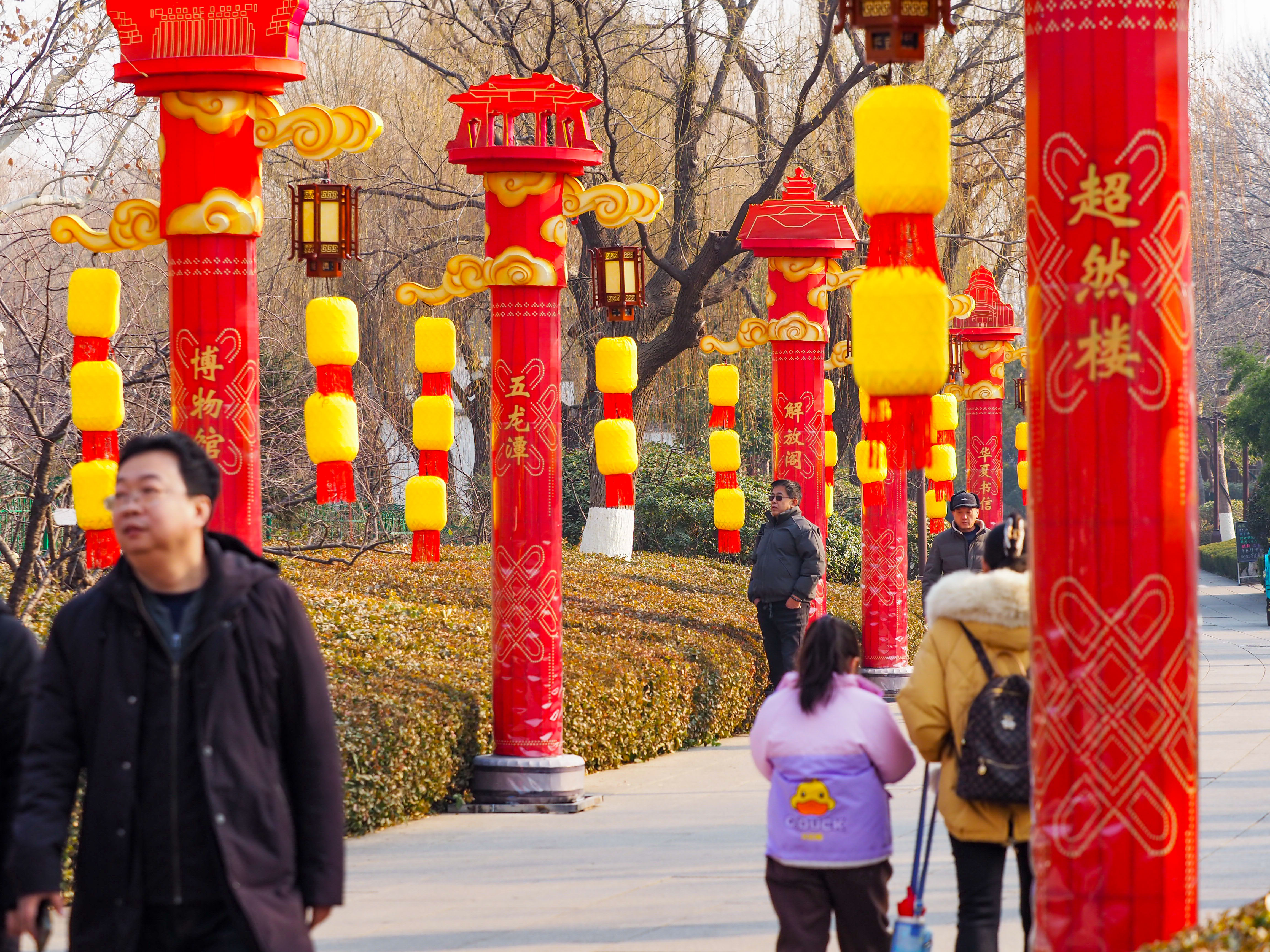 精美又宏大,大明湖畔的华表造型花灯引游客打卡留念 大众报业·齐鲁壹点 2025-01-20 2.0万 齐鲁晚报·齐鲁壹点记者 周青先 腊月二十一,济南大明湖南岸,十几个高大的华表造型花灯引人注目。大红色的花灯精美又宏大,上边还特别标注了济南的名胜古迹和景点。游客们纷纷在此打卡拍照。 济南市第44届天下第一泉迎春花灯会首次将灯会展区扩展至大明湖、五龙潭和环城河景区,拓宽了市民游客赏灯游园的时间和空间。 责任编辑:周青先