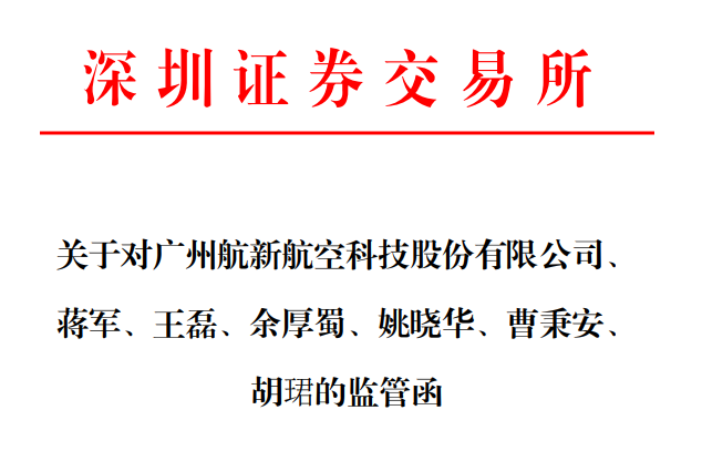 根据中国证券监督管理委员会广东监管局《关于对广州航新航空科技股份有限公司、蒋军、王磊、余厚蜀、姚晓华、