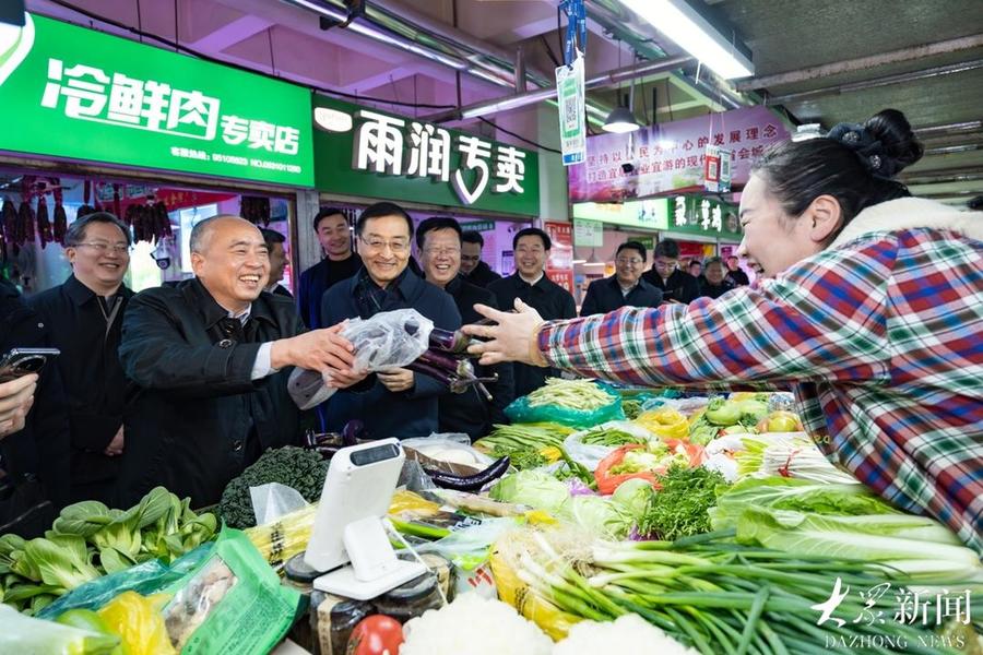 春节临近,年味渐浓,各大商超、市场备足年货,洋溢着喜庆氛围。在济南和谐广场、领秀城菜市场,林武认真察看米面粮油肉蛋奶果蔬等供应销售情况,听取节日市场保供情况介绍。林武与前来购物的市民亲切交流,给大家拜年,询问年货是否备齐、食品新鲜不新鲜、价格贵不贵等,叮嘱有关部门要加强食品质量安全检测,让老百姓买得放心、吃得安心。要确保货源充足、货畅其流,保持物价稳定。要开展好提振消费行动,满足人民群众节日多元化消费需求。要绷紧安全这根弦,切实维护市场秩序。