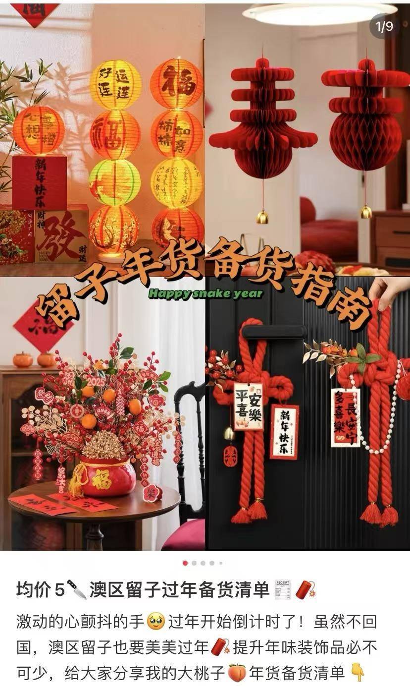 “过年开始倒计时了,不回国的澳区留子也要美美过年!已经在国内电商平台上下单了许多好看的春节装饰品,期待海运到货。”在澳大利亚留学的Brynn在社交媒体上晒出了自己的年货清单,创意英文春联、发财果抱抱桶、蛇年卡通红包……琳琅满目的年货漂亮又喜庆,“比外国商家做的装饰品好看多了”。对于不少留学生和海外华人来说,反向海淘已经成为他们生活中不可或缺的一部分。