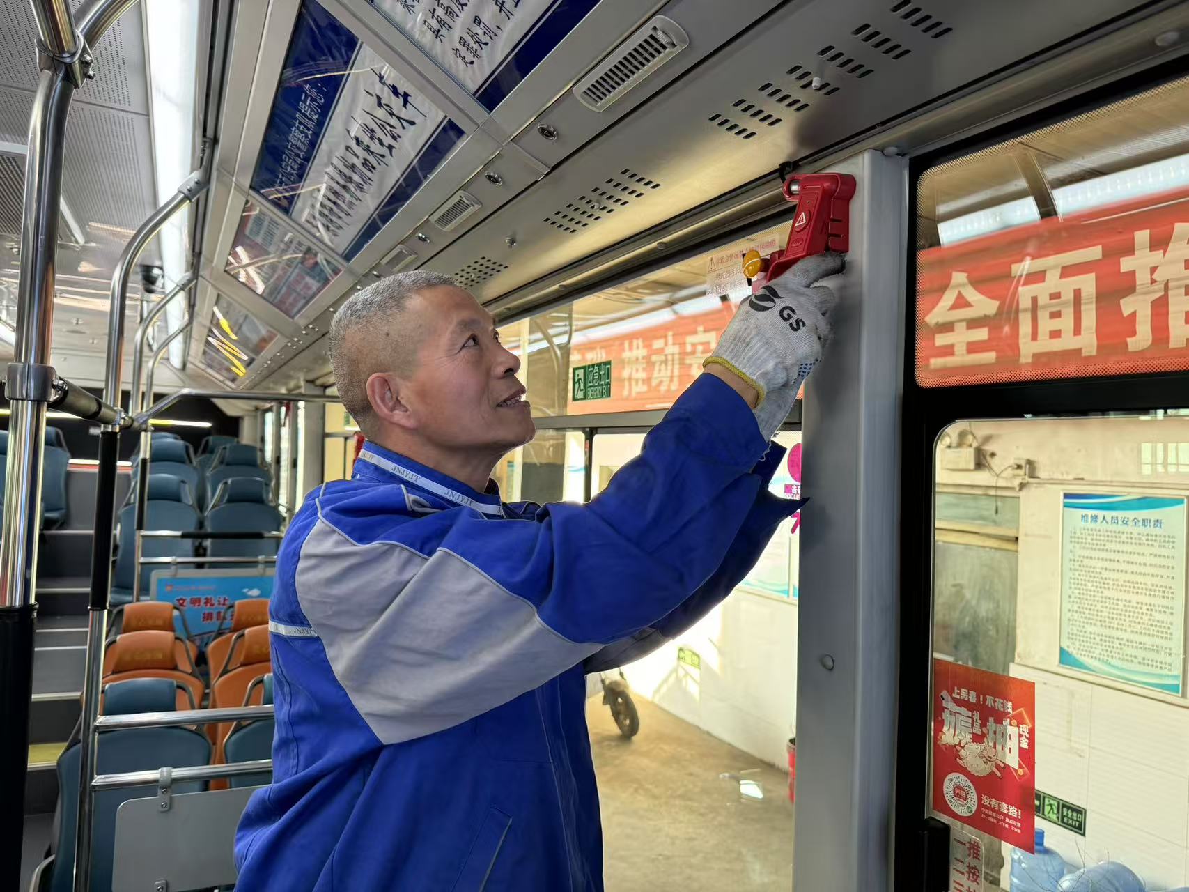 今年49岁的任存元,是公交维修的“老医生”。“这几天客流逐渐增多了,基本上是回家过年的旅客。”作为济宁城际公交集团技术管理科科长,任存元对春运有着丰富的经验。早在春运开始前,就带领科室启动全面的车辆安检工作,并制定工作预案,“满格”守护市民顺畅出行。